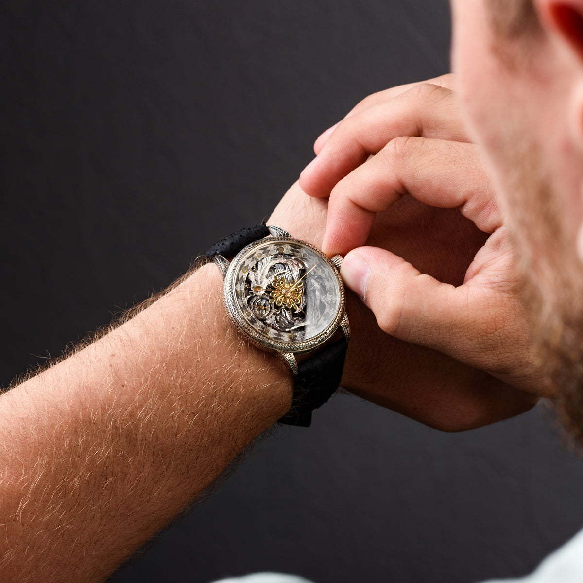 Patina Watch Studio is an artisan workshop that does not manufacture or sell watches. Mastering both the aesthetic and technical know-how of fine watchmaking, we are attentive to the needs of demanding owners of timepieces who wish to personalize or restore their watches. Our interventions are always carried out in strict compliance with the watchmaking histories and codes of the brands that have sold the watches that are entrusted to us. Our services include modifications which are handcrafted. We are neither associated nor affiliated with any watchmaking group. We carry out our work in complete independence and have no direct or indirect relationship with the brands on whose products we work. The brands mentioned on our website are for reference purposes only. Patina Watch Studio guarantees the quality of the work and interventions carried out on behalf of its clients on their watches. However, any responsibility towards the owner of the transformed watch and/or third parties is specifically excluded for any use other than for personal and private use by the owner.